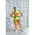 Підкресліть свій стиль з костюмом Блогера від ZKAZKA! Цей костюм складається з головного убору, штанів і кофти, виготовлених з високоякісних матеріалів, таких як біфлекс і лазер. Розмір костюму 44-46. Лімонна тканина світиться у ультрафіолеті, ідеально підходить для неонових вечірок, надаючи вашому образу неповторності та яскравості